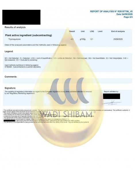 Analysis Report of Thymoquinone 24/09/2025: R25197799_V0