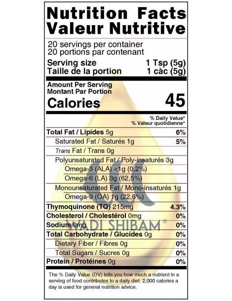 100% pure and natural, resulting only from a First Mechanical Pressure Cold Ethiopian Black Seed Nigella Sativa or "Habachia", this seed oil with multiple virtues is of a quality at the height of the seed of which it is produced.